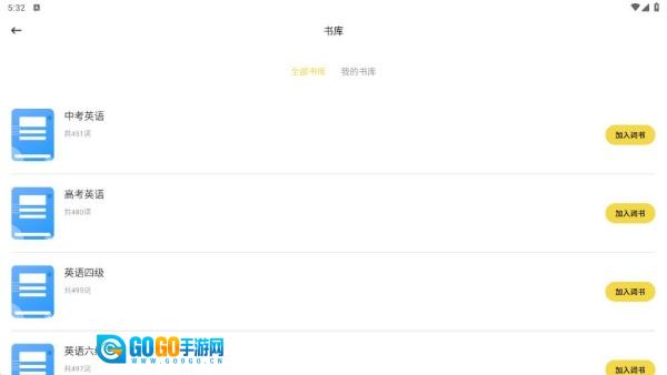 3、书库页面呈现了不同阶段的单词背诵书库,大家可根据需求自由挑选。