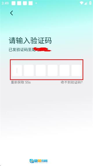 4、在验证码输入页面的输入框内填入收到的验证码,以此完成账号登录流程。