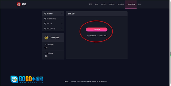2、登录自己的账号后进入上传界面,点击“上传伴奏”按钮。