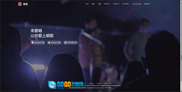 1、用电脑打开https://www.5aichang.cn/爱唱网站,在页面上找到并点击“上传MV/伴奏”按钮。