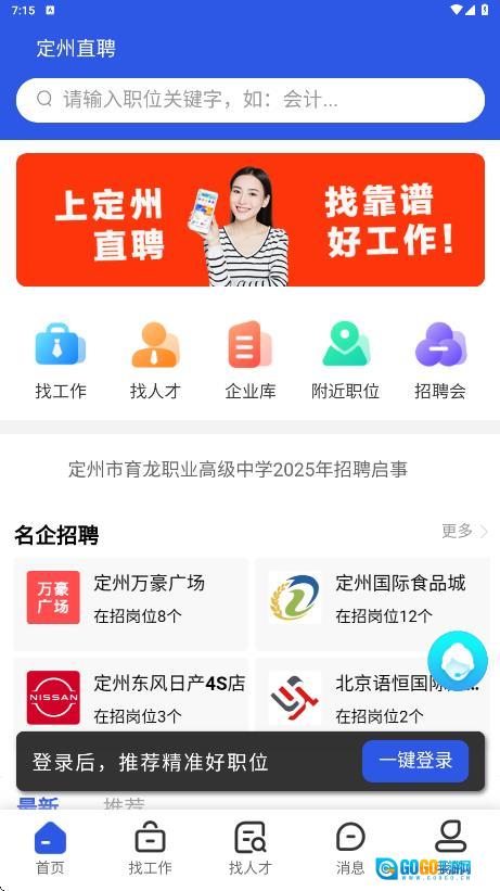 2、首页会呈现部分知名企业的招聘信息,方便用户快速浏览并做出选择。