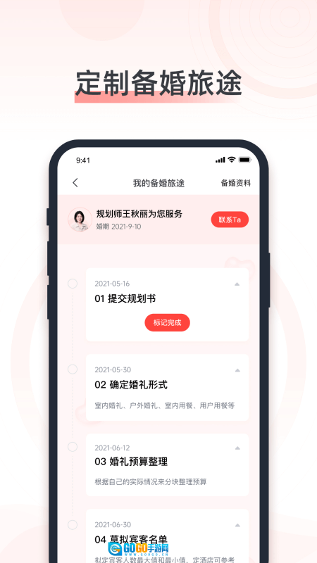 3、用户还可以在这里定制自己的婚礼准备行程。
