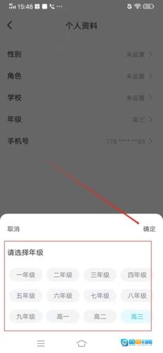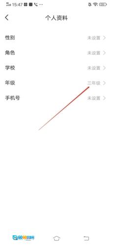 2、在个人资料界面,点击“年级”右侧的具体年级;
