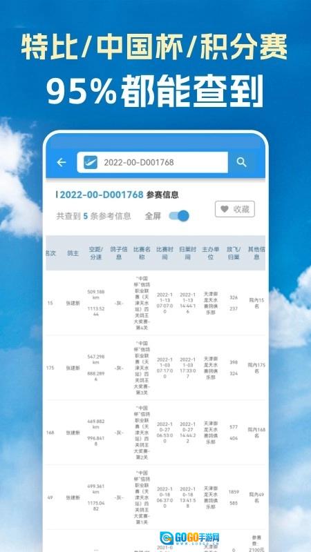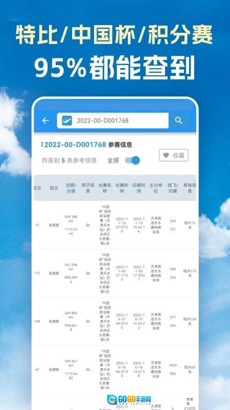 赛事,可快速查看爱鸽比赛数据直播,支持科汇、安捷、云飞、爱羽、优必胜、隆飞尔等当前主流系统的全部成绩直播。