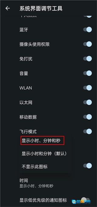 4、状态栏秒:状态栏上的时间显示能够精确到秒的单位。