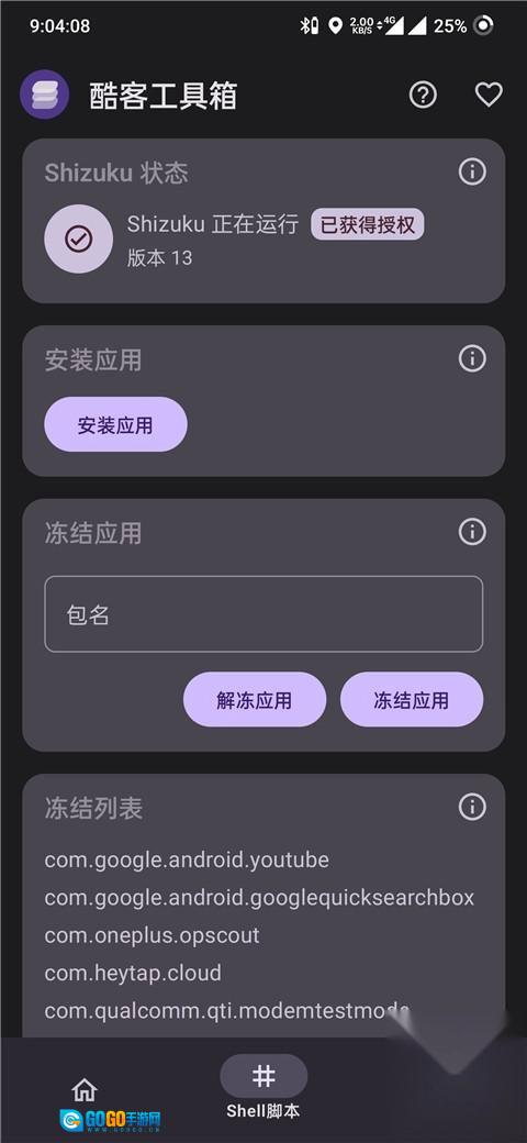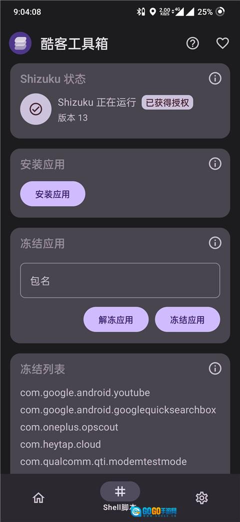 2、新添加了Shell界面,在连接Shizuku之后,可提供应用降级以及应用冻结的功能。