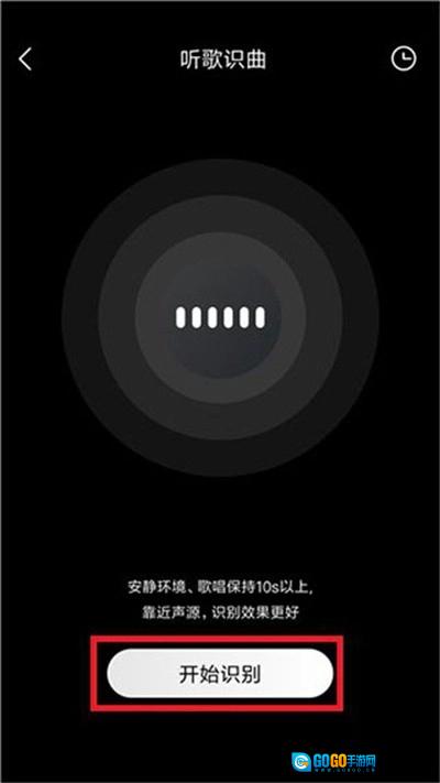 3.接下来会进入听歌识曲功能界面,点击【开始识别】按钮后,就可以播放歌曲或者自己哼唱来进行识别。