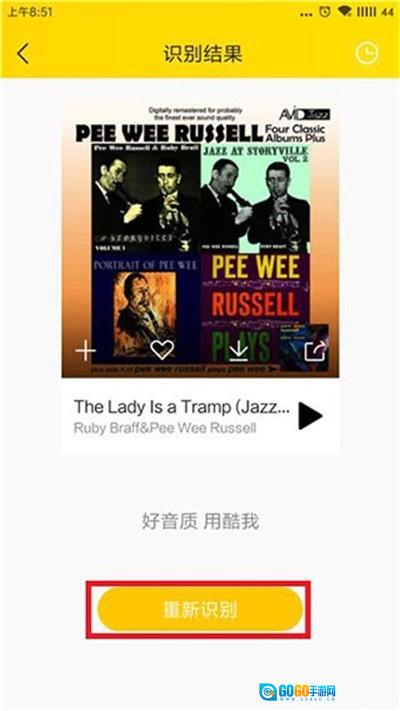 5. 使用听歌识曲功能时,若处于唱歌场景,需确保环境安静,同时将麦克风对准发声位置,如此能提升识别结果的准确性。识别完成后会显示结果,不过识别过程中可能出现错误,此时点击【重新识别】按钮再次识别即可。