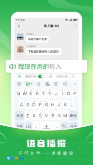 支持在输入文字的同时进行语音播报,这样能让长辈更方便地校对和修改输入内容。