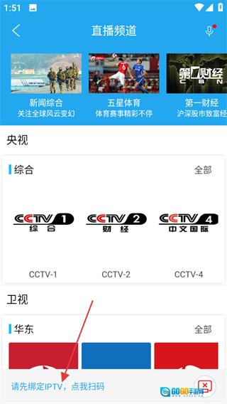 2、进入投屏操作界面后,找到带有蓝色字体标注的“绑定iptv点我扫码”选项并点击,随后开展绑定流程。