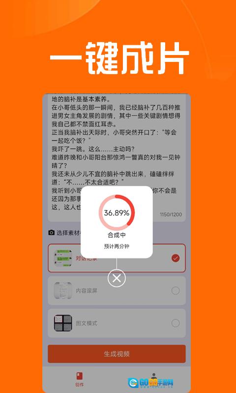 3、推文达人只需一部手机,就能将您的文字内容快速转化为爆款视频,助您实现一键成片。