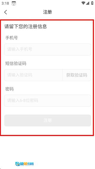 3、在登录页面,点击注册选项,进入账号注册页面。