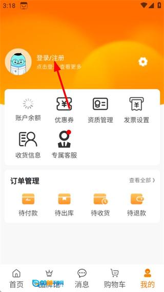 2、进入个人中心页面后,点击登录注册选项,即可跳转至登录页面。