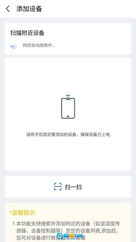 1. 自动查找周边的传感器设备,随即提醒用户发起连接。待连接完成后,用户就能借助手机操控该设备的全部功能。