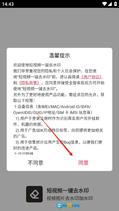 2、进入后阅读并同意短视频一键去水印的用户协议。