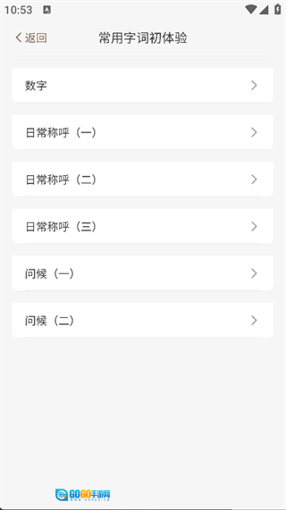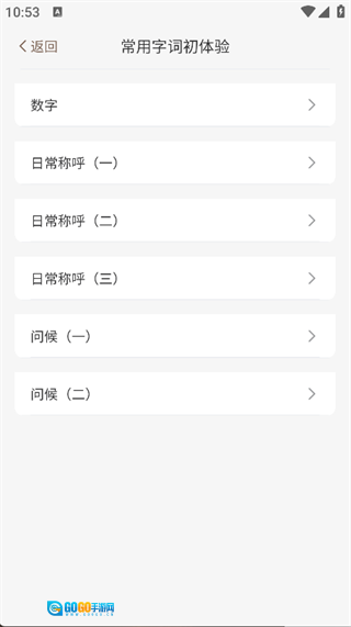 3. 点击页面上的“入门必学”功能,就能看到“常用字词初体验”板块,可学习日常称呼、问候等内容;