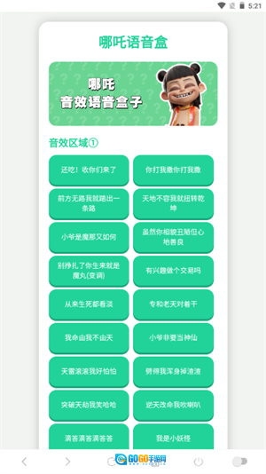最近在自媒体平台上热度很高的哪吒语音盒,是一款收集了哪吒经典语音的语音包软件。它把语音划分成多个区域,方便用户快速找到心仪的内容,点击就能播放经典语录,特别适合用来整蛊朋友,或是在玩游戏时调侃队友、逗乐对手。此外,这款语音盒还支持提取语音和文案素材,为二次创作提供了便利。想体验用哪吒语音整蛊他人的乐趣,就赶紧下载软件试试吧!