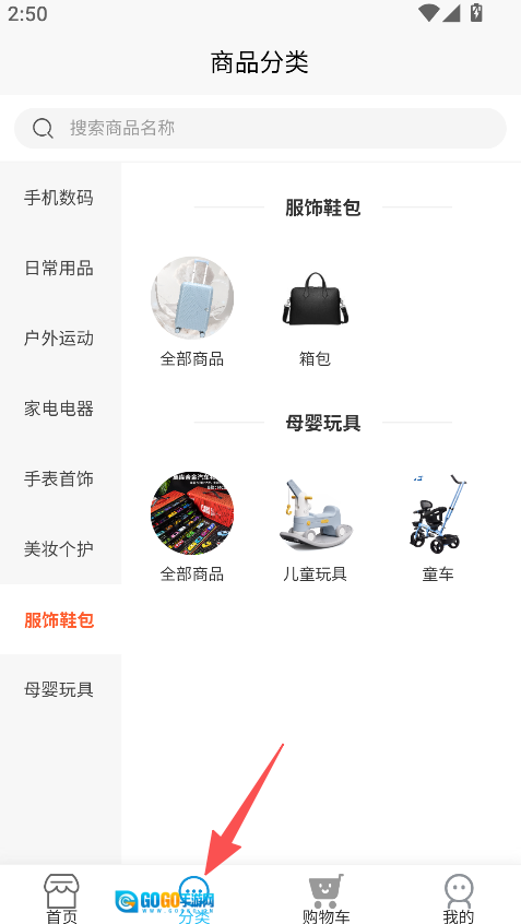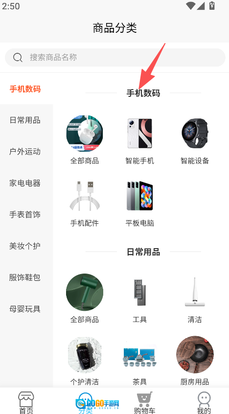 1、进入分类板块选择商品类别,如手机数码。