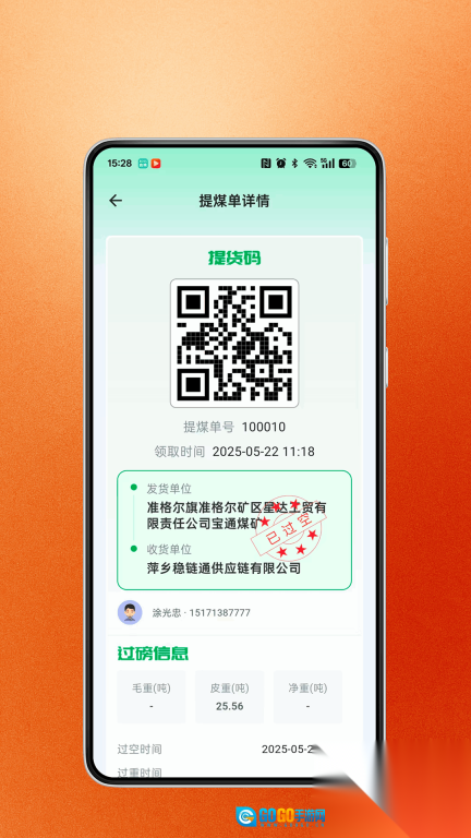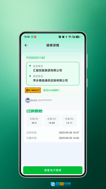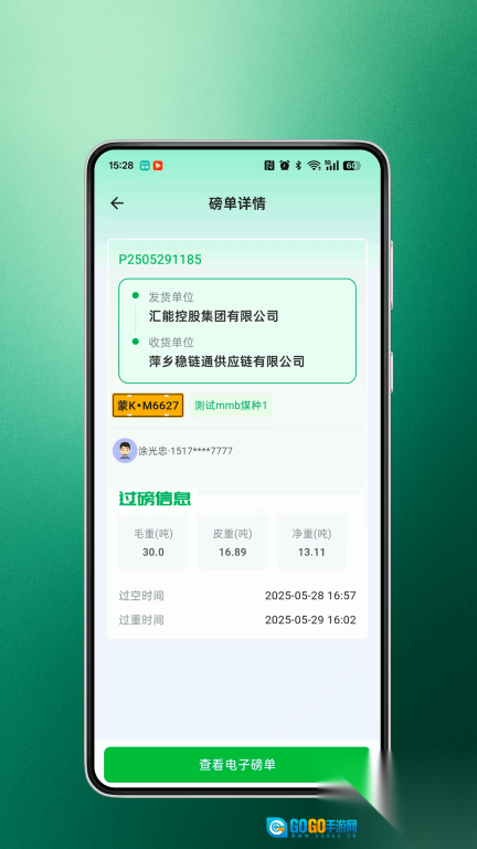 2、在磅单详情页面,您能够随时掌握过磅的相关信息,并且可以查看电子磅单。