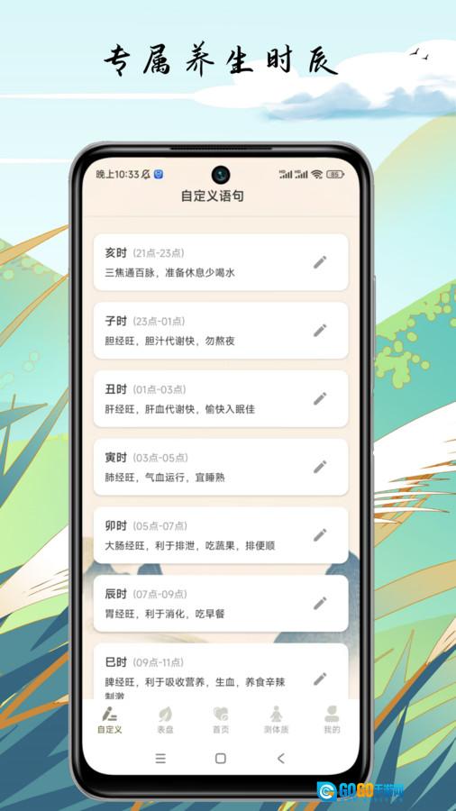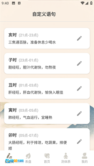 2、进入后能看到自定义的语句,不同时辰都设有对应的养生语句提醒;