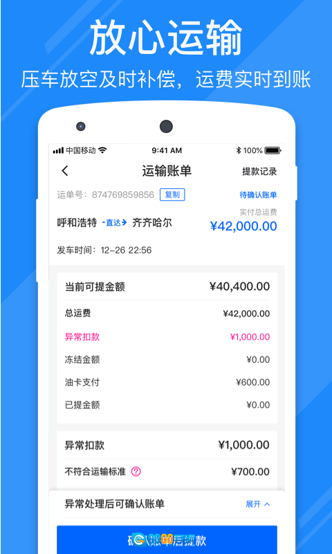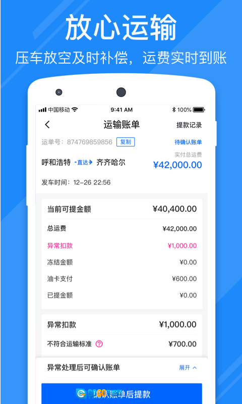 每次完成对应的货物运输任务后,都能直接在线提交订单并获取相应金额,不必担心会出现无法拿到款项的情况。