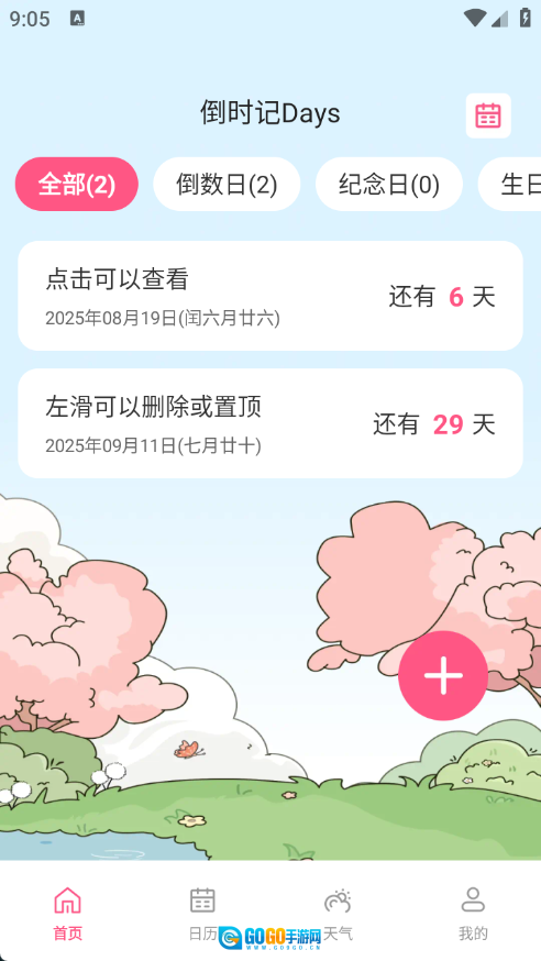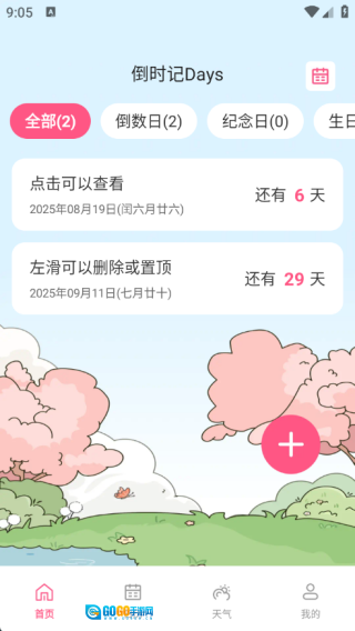 2、点击页面上的“+”按钮,即可添加倒数日、纪念日、生日等各类信息。