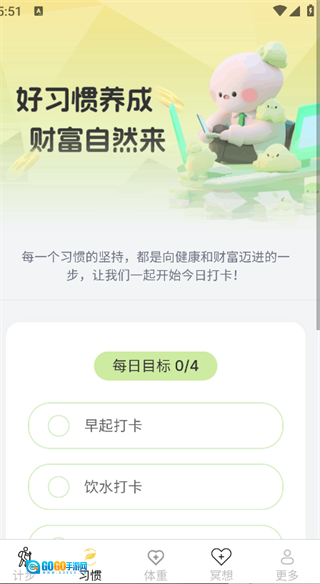 点击页面下方的“习惯”选项,就能设置每日打卡目标啦。