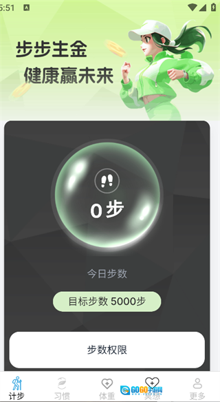 1. 完成安装后,在主页面就能开启步数权限,查看今日的步数情况。