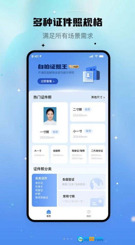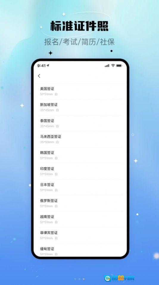1、护照照片、签证照片、考试证件照片、简历照片、名片照片等数百种证件照尺寸格式;