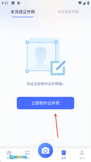 2、在证件页面中点击立即制作证件照进入拍照页面;