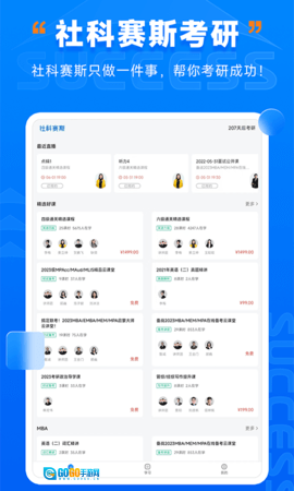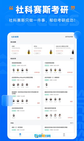 社科赛斯考研HD是一款聚焦研究生考试的题库类应用,支持全国院校信息的查询功能,具体包含院系设置、分数线、复试安排以及调剂政策等内容;其覆盖的科目十分广泛,有MBA、MPAcc、MEM、MPA、MAud,还有考研政治、考研英语、考研数学、法律硕士等;同时,该应用还提供了一套系统且全面的考研课程体系。