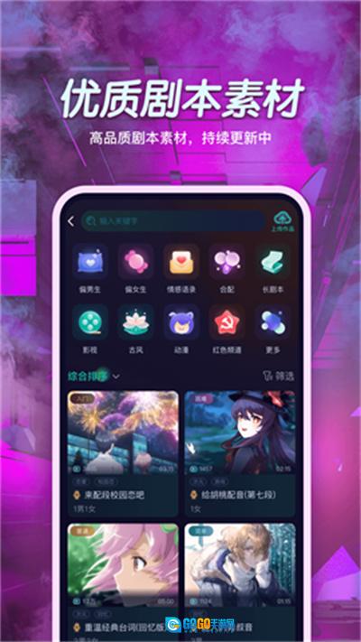 1、这款应用在类型选择上十分丰富,你可以依据自己的喜好来完成配音。