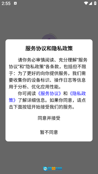 1、安装完成后打开该软件,进入软件前需要先同意相关的隐私权限设置。