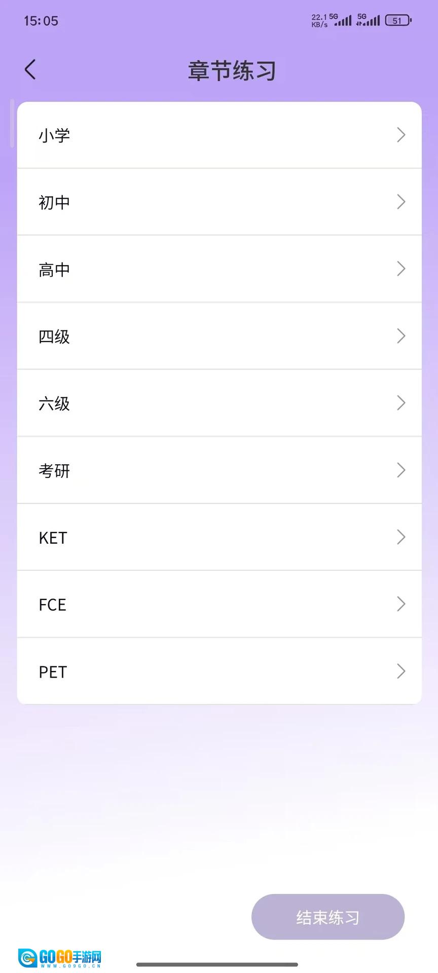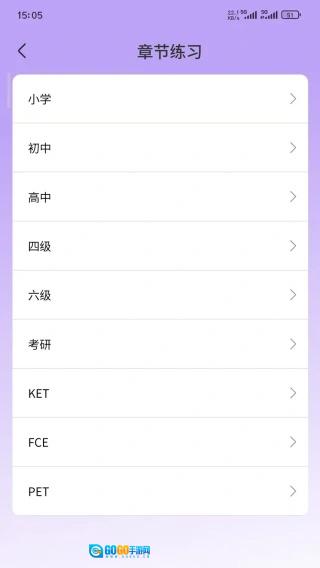 3、进入【章节练习】板块后,大家能够依据自己的实际水平与学习需求,挑选适宜的词汇范围来开展学习。