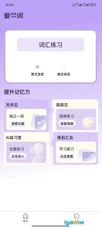 进入首页后,丰富多样的功能便清晰呈现,同时还提供了多种词汇练习模式。