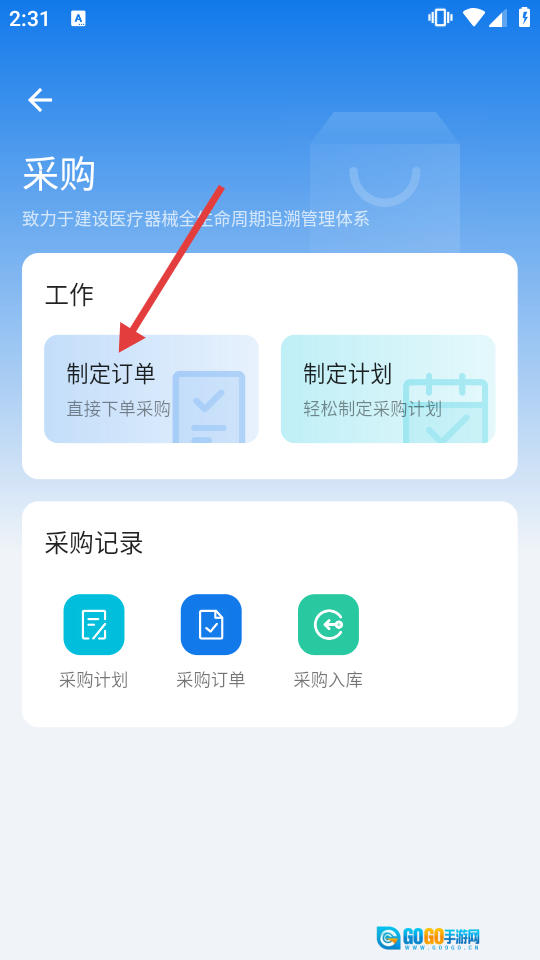 2、在采购页面,点击【制定订单】按钮,即可进入制定采购订单的页面。