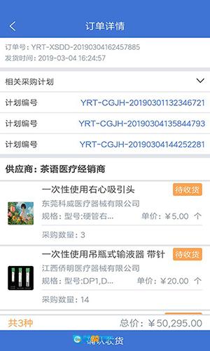 2、到货验收环节:通过扫描运输包装上的二维码来核对产品的批次信息,完成在线签收操作后,系统会自动对库存数据以及财务应付账款进行更新。