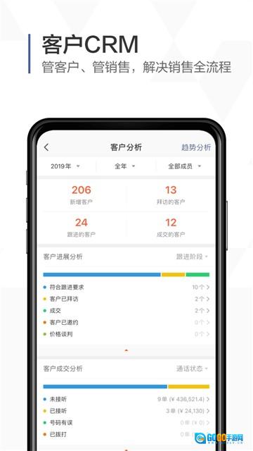 智能客户关系管理系统具备客户管理、销售流程管理(涵盖商机、订单、商品、合同、回款环节)、成交管理、营销推广等功能,结合丰富的数据分析报表,助力企业轻松把控业绩状况与客户管理工作。