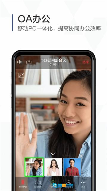 - OA办公涵盖了流程审批、工作汇报、视频会议、移动报销、任务管理、企业云盘、在线聊天等多种实用功能。
