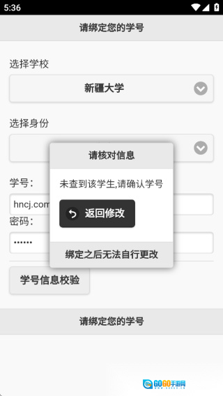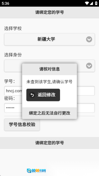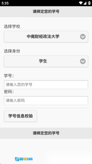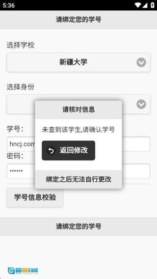 点击“学号信息校验”按钮,完成校验后点击【绑定】(请注意,绑定操作一旦完成便无法更改)。