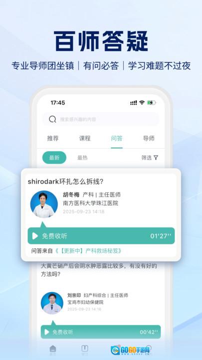 3、问答互动功能,用户可以在平台上提出产科临床操作疑问等医学相关问题,还能收听其他用户问题的专业解答,以此拓展自身的知识储备。
