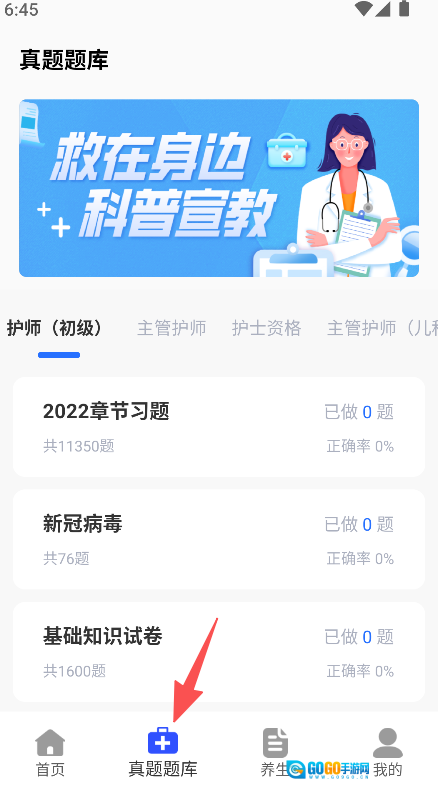 1、专注于医疗护理类考试,覆盖护师(初级)、主管护师等多个类别,配备章节练习题、新冠病毒相关专题、基础知识测试卷等学习资料。
