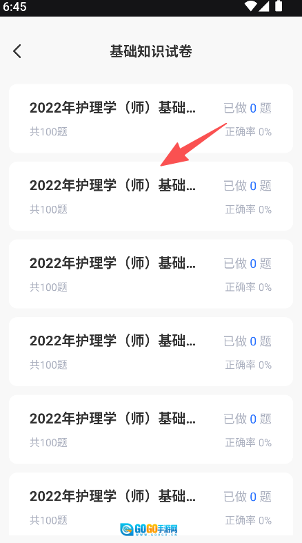 2、进入试卷列表后,挑选像2022年护理学(师)基础试卷这类具体试卷,即可开始答题。
