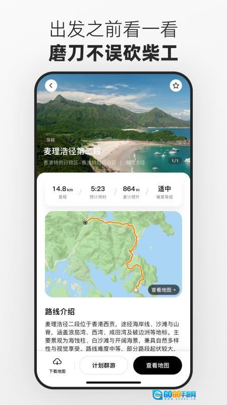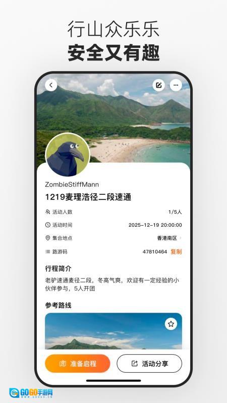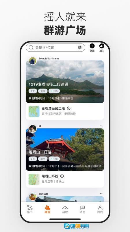 3、群游功能与路线板块衔接流畅,方便组队进行徒步活动,提升徒步过程中的互动体验。