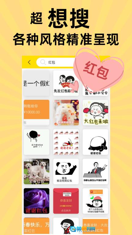 悦动表情包是一款十分有趣的表情包应用,其表情包资源库相当丰富,不仅涵盖了全网热门的表情包分类,还收录了大量流行的聊天斗图素材。智能搜索功能十分实用,输入关键词就能快速找到你想要的表情,同时还支持DIY创作,通过专业级的表情包编辑器,你可以轻松制作出专属的个性表情。快来体验一下吧,让你的聊天变得更加有趣!