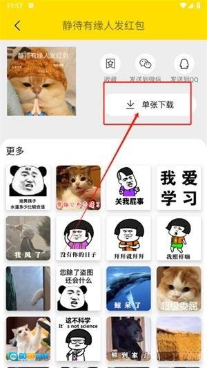 4、找到喜欢的表情包后,轻点单张按钮就能快速保存到本地设备。