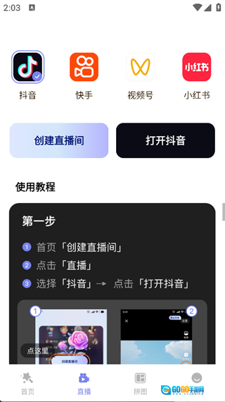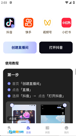 3. 点击页面底部的“直播”选项,就能挑选希望进行直播的平台,并创建对应的直播间。