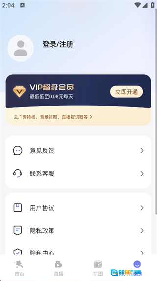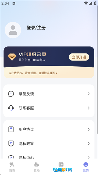4. 点击页面底部的“我的”选项,就能登录账号,进而查看意见反馈、用户协议、隐私政策等内容。