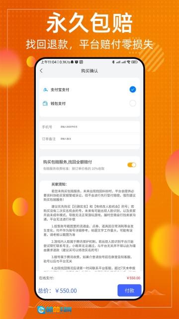 3、提供永久赔付服务,核对账号信息无误后免费返还,支持多种交易渠道。