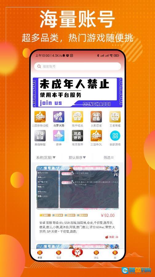 3、平台还支持闲置账号交易等功能,这里有超多性价比出众的账号供您挑选,交易过程安全又可靠。